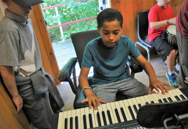 The Music Program offers instruction in guitar, drums, and keyboards. You can also find in our music room a trombone, trumpet, tambourines, bongos, and maracas. Campers don’t need to bring their instrument to camp. If you enjoy singing, you can sign-up for our choir activity, or for laughs you can sing your favorite song at our ‘karaoke lunches’. Musicians and singers have plenty of opportunities to perform on stage during evening activities like the ‘Big talent show’ and ‘Stars in your eyes’.