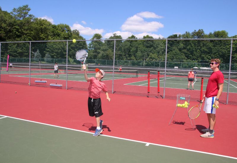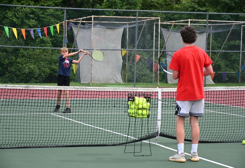 The Tennis Center features 10 hard-surfaced courts that are in excellent condition. Top quality racquets are provided in various lengths, head sizes, and weights. The tennis director will restring and regrip the racquets as needed. Campers are permitted to bring their own racquet to camp. Ball machines are utilized by the staff to assist during instruction, and thousands of new tennis balls are purchased each summer to ensure you get the best bounce!