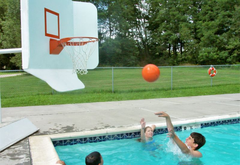 Cayuga has two swimming pools: one on Junior Campus (measuring 75’ by 35’) and the other on Teen Campus (50’ by 30’). The pools are utilized for recreational swimming, swim instruction, intercamp swim meets, special events (eg. water carnival, olympics) and a variety of water sports. Each pool is equipped with lights for certain evening activities like the Hawaiian pool party. The main pool is also used for the polar bear club. If you enjoy early morning dips in cold water (like a polar bear), join the club and meet the ‘other bears’ bright and early at the pool. It’s exhilarating, and a brisk refreshing way to start your day!